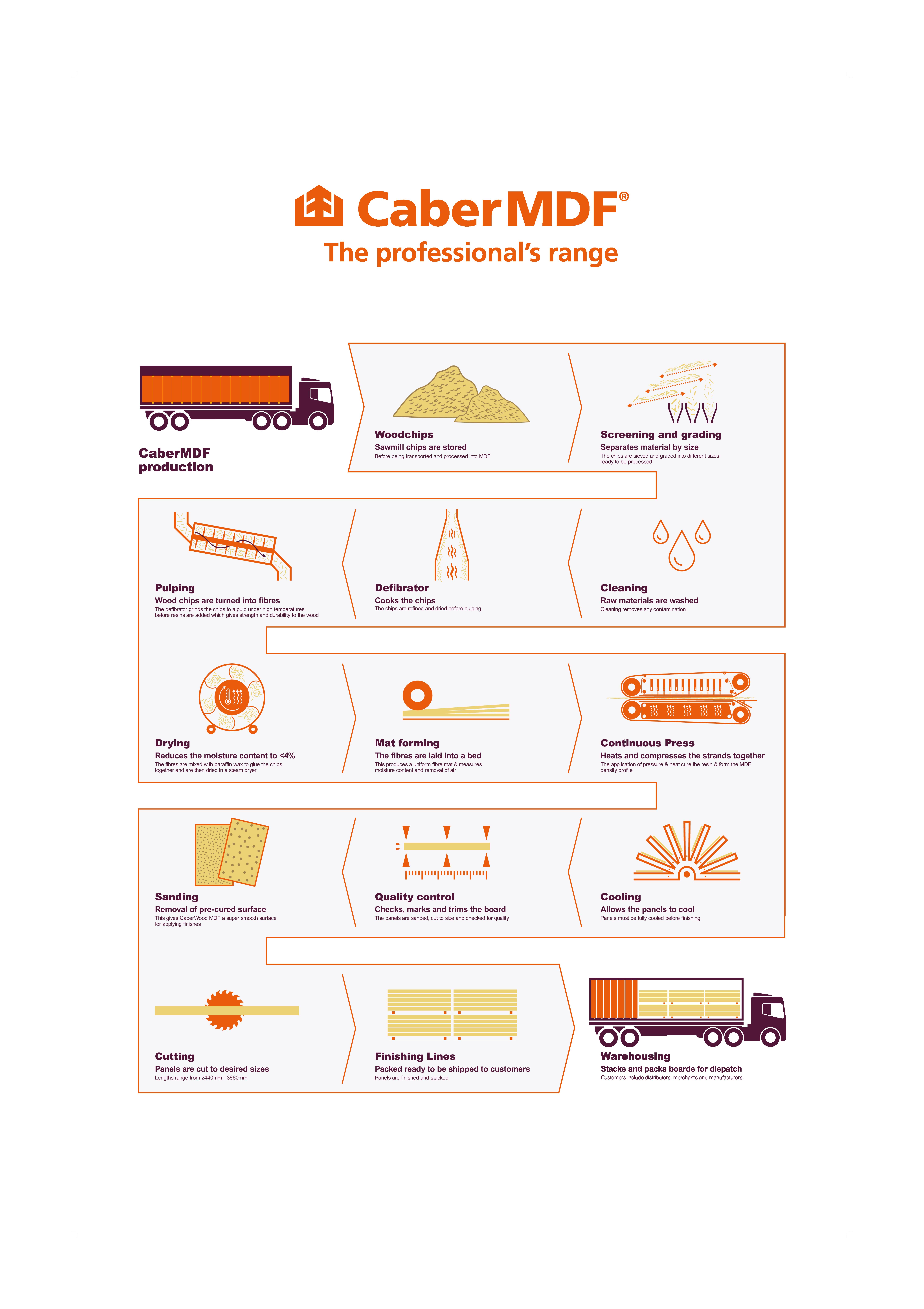 Finally, the packs of panels are shown moving from the production line to the warehouse before being dispatched to West Fraser’s distributors and other customers. Overall, the video clip of the Cowie site captures the speed and efficiency with which woodchips are processed into the CaberWood MDF used for everything from furniture making to. shop fitting.